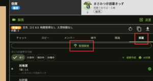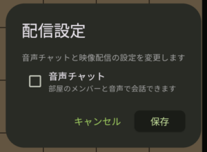 部屋の作成者は音声チャットのチェックをつけずに作成した部屋で部屋タブの配信設定から音声チャットを有効にすることができます。