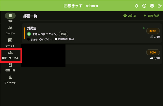 囲碁きっず – reborn – は全体として1つの対局場というよりも、教室・サーッ来るという少人数のコミュニティ・対局場が集まったものとお考えください。