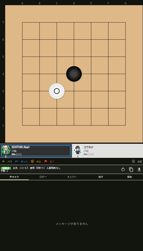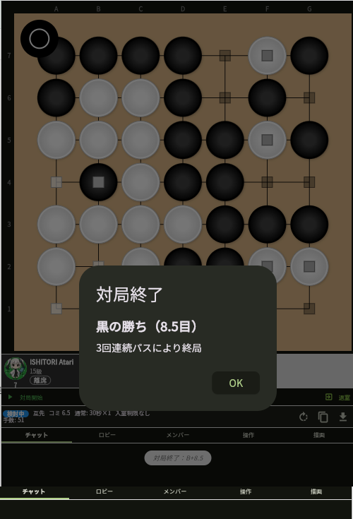 打つところがなくなったらパスをします。パスは左上の石で表現されます。