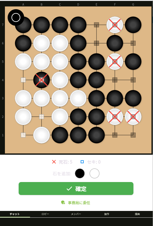 死石とセキの状態が確認できたら確定ボタンをおします。