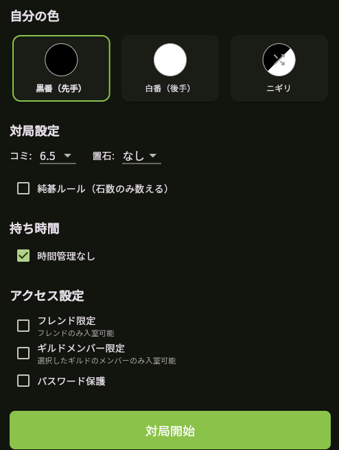 アクセス制限をすると対局中の観戦と棋譜の閲覧を制限できます。